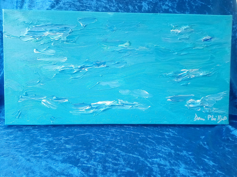In Mediterranean Stories, SanRemo, Dani Phillip distills the sea into a language of light and movement, where turquoise depths and fleeting whites dissolve into one another like time itself. The painting does not depict water, it embodies it: fluid, luminous, and impossibly alive.