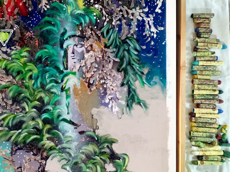 Oil, pastels and sprays on canvas