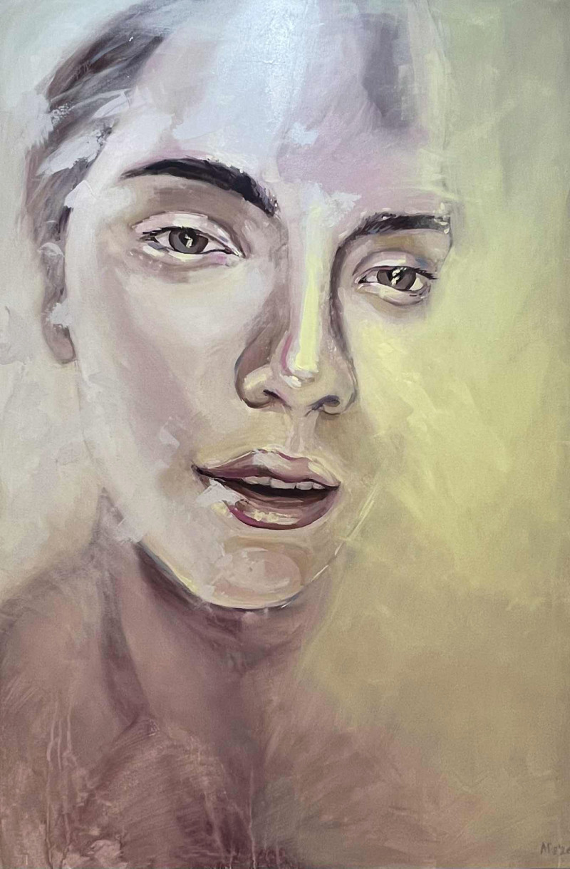 Her work investigates emotional landscapes and the atmospheric states of female presence. Through a refined dialogue between figuration and abstraction, Dzerve constructs cohesive bodies of work that explore identity, vulnerability, and psychological climate through restrained palettes and calibrated light.