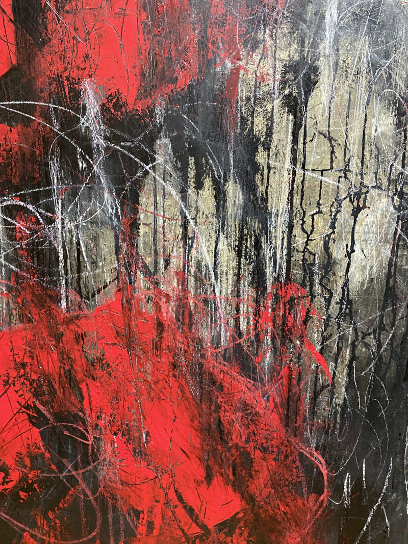 Die wirren Linien, teils eruptiv, teils fragil, erinnern an Spuren eines Prozesses, der nicht abgeschlossen ist. Sie zeugen von Transformation – von etwas, das vergeht, um Platz für Neues zu schaffen. „Fire“ ist kein statisches Bild, sondern eine Momentaufnahme eines ewigen Zyklus.