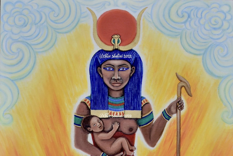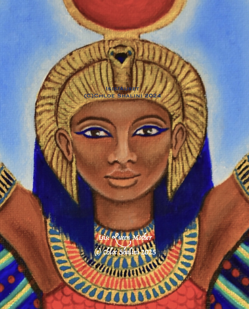 Isis (ancient Kemetian/Egyptian: Aset or Auset) is traditionally known as 'Queen of Heaven' and 'Great Mother'. Her attributes have been merged or overlaid with those of Hathor and later with 'Mother Mary'.