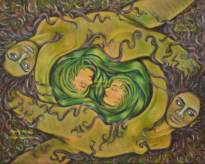 One of a series of illustrations in oil paint for an Oracle card series I am developing, available as a print and on many items such as tee-shirts, hoodies and homewear/gifts at chloeshaliniart.teemill.com and ChloeShalini.redbubble.com