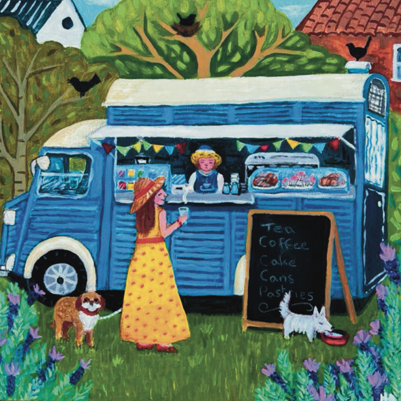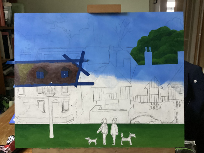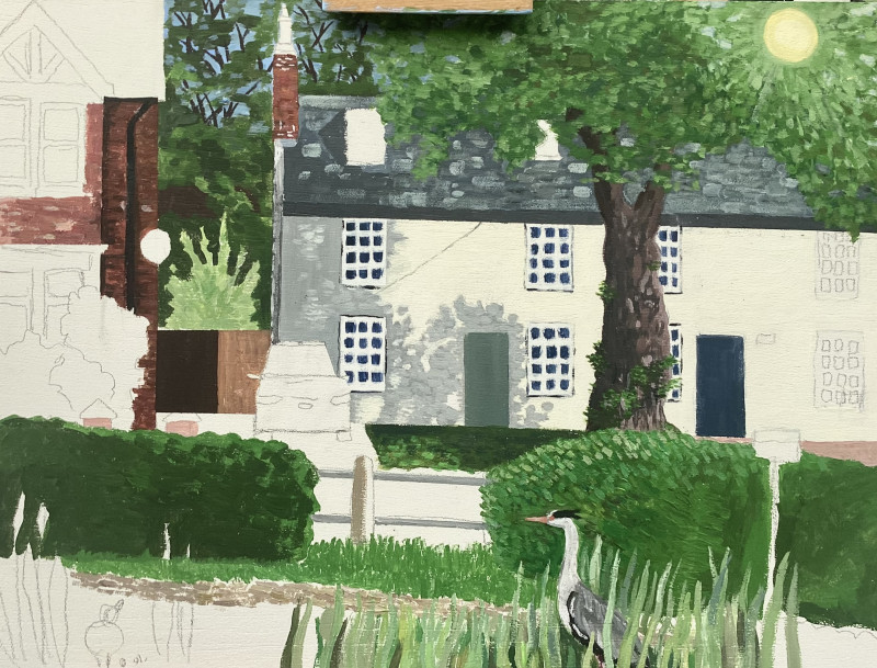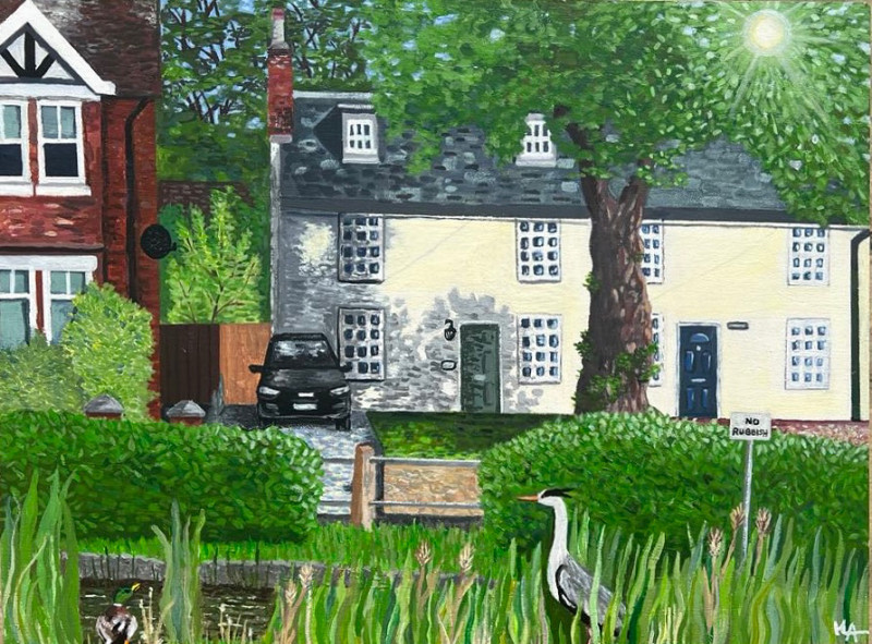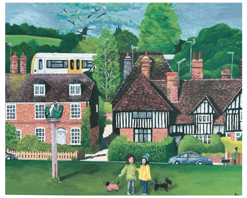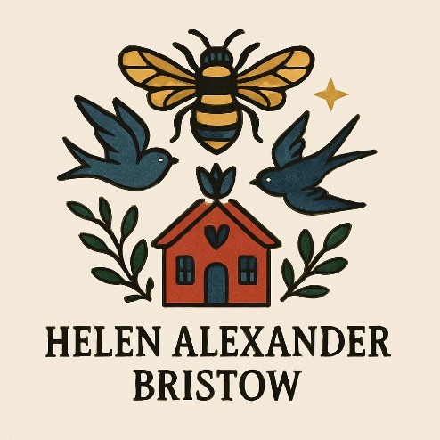 Helen Alexander Bristow is a British artist working in a contemporary folk art tradition, creating richly detailed, emotionally resonant paintings that explore place, memory, and the quiet codes that shape daily life. Drawing on personal experience and a neurodivergent perspective, her work often focuses on suburban and semi-rural environments, where stillness, signage, and structure reveal subtle tensions between nature, community, and control.
