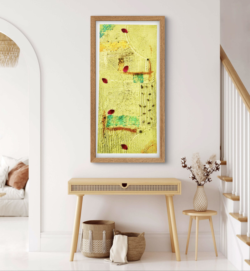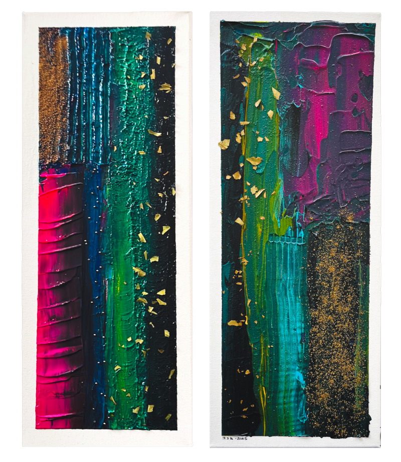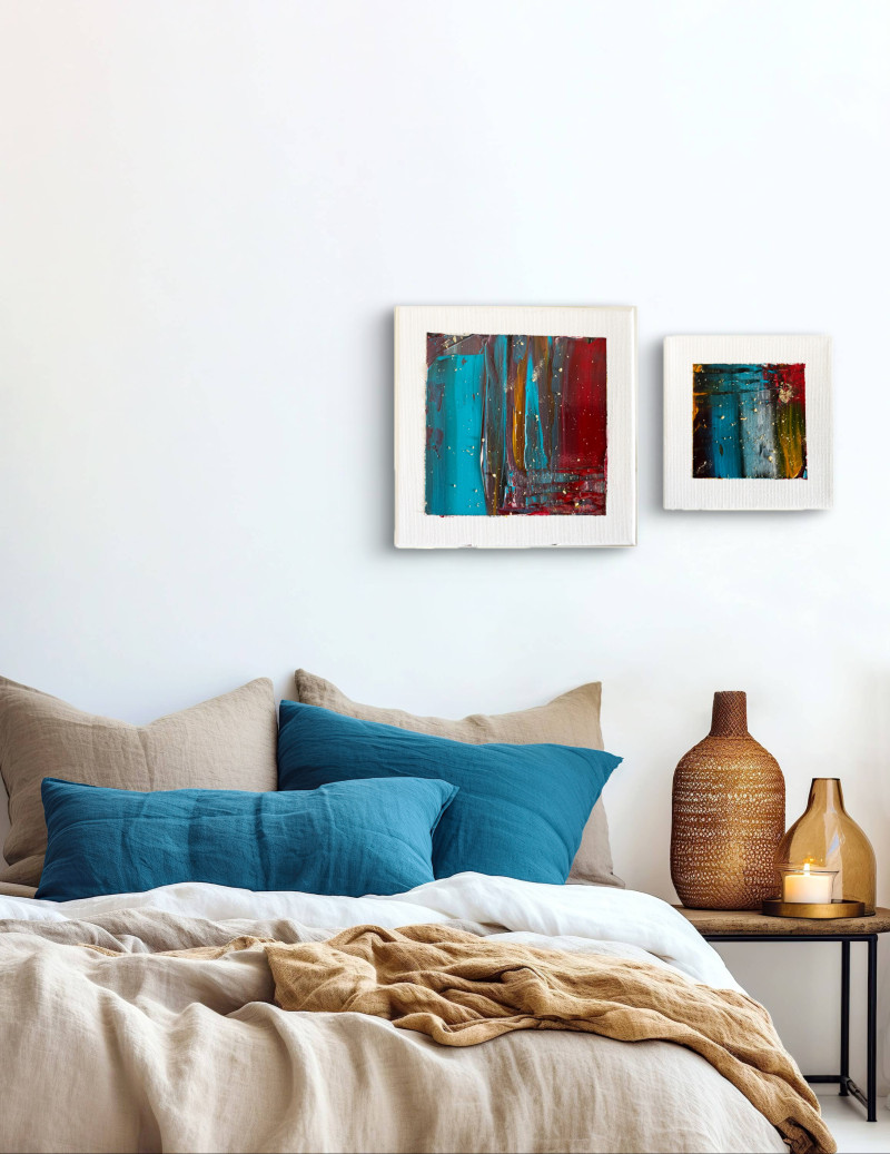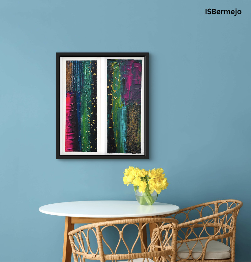 La combinación de colores y especias crea una sinestesia visual y sensorial que trasciende lo puramente estético; une el cromatismo con las esencias naturales, las hierbas y las especias para evocar recuerdos profundos y emociones latentes. Cada tono puede remitir al calor de una cocina ancestral, al aroma terroso del comino, a la frescura de la menta o al dulzor envolvente de la canela. Esta unión entre color, aroma y textura transforma la pintura en una experiencia más íntima, donde no solo se observa, sino que también se siente y se recuerda. Enfocar la obra en estos elementos permite capturar lo invisible: los momentos vividos, los olores olvidados y las sensaciones táctiles que forman parte de nuestra memoria emocional. Así, la pintura se convierte en un puente sensorial entre el presente y el pasado, entre lo tangible y lo intangible.