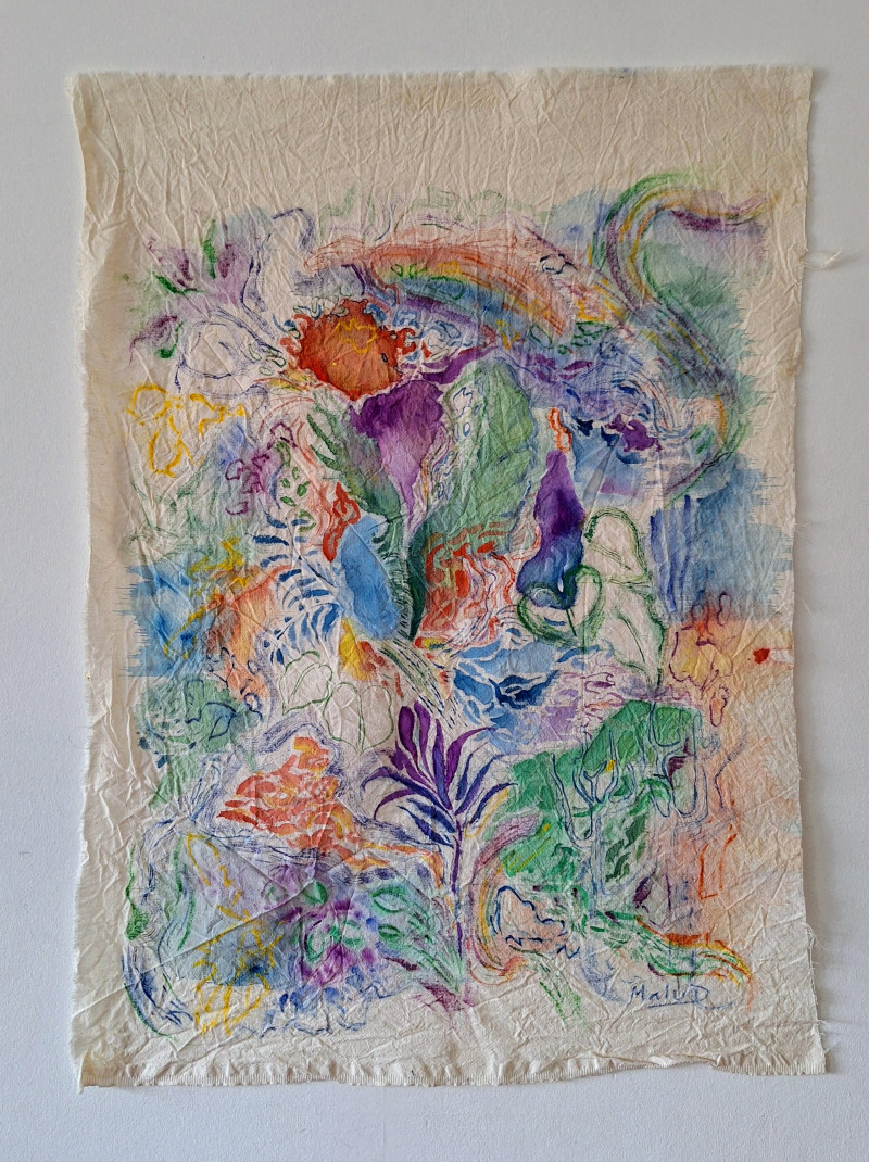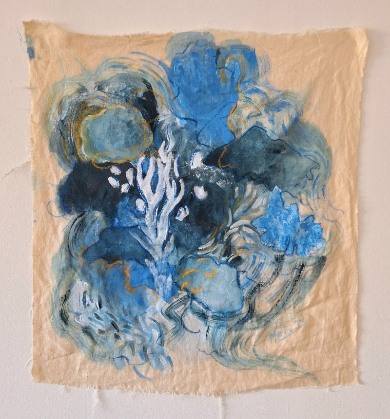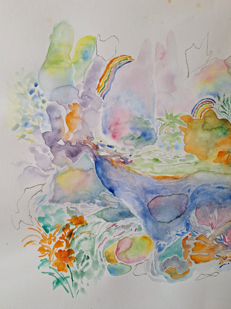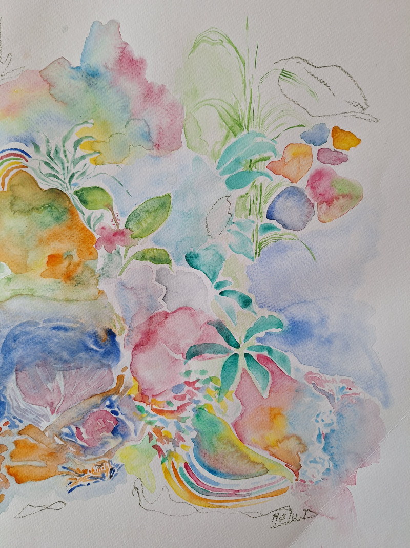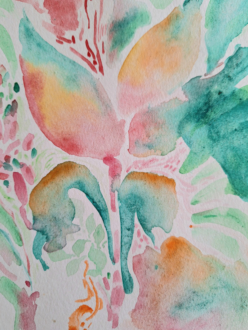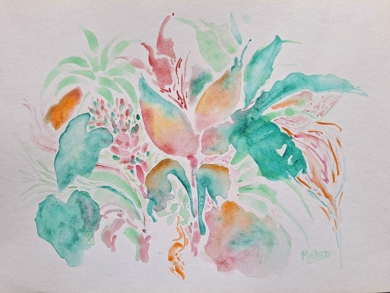 Esta obra pertenece a la serie Algodones. Es una acuarela donde exploro los colores a través de las manchas y las líneas.