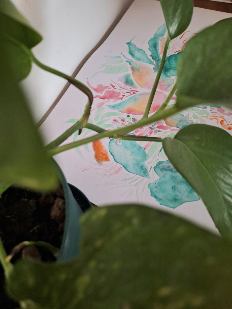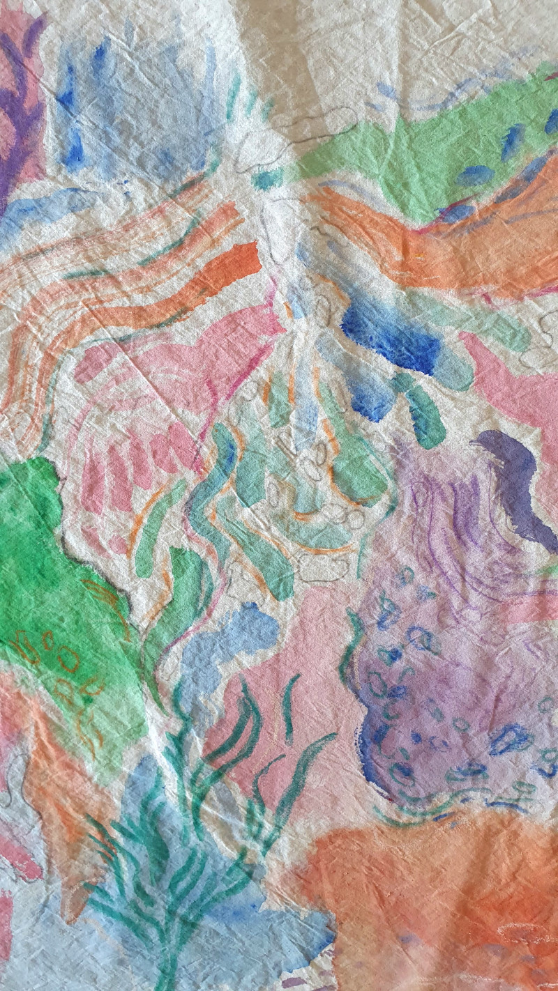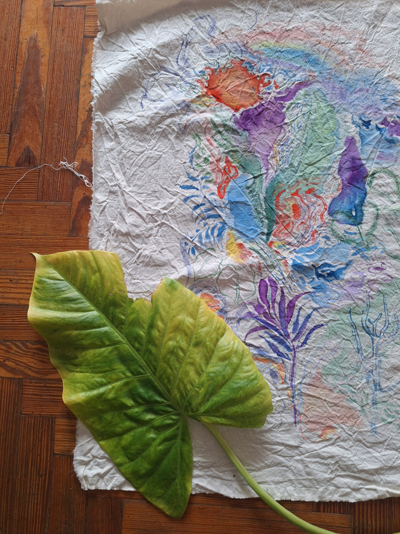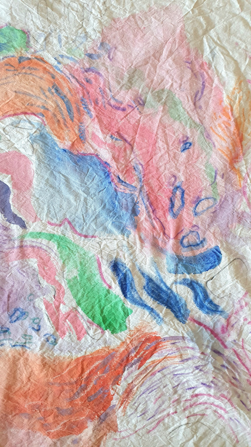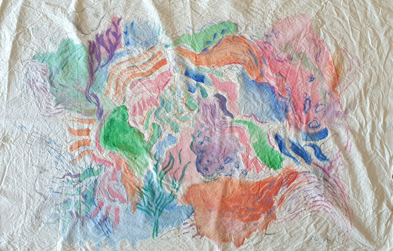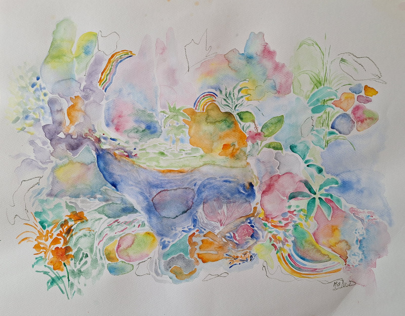 Esta obra pertenece a la serie Algodones. Es una acuarela donde exploro los colores a través de las manchas y las líneas.