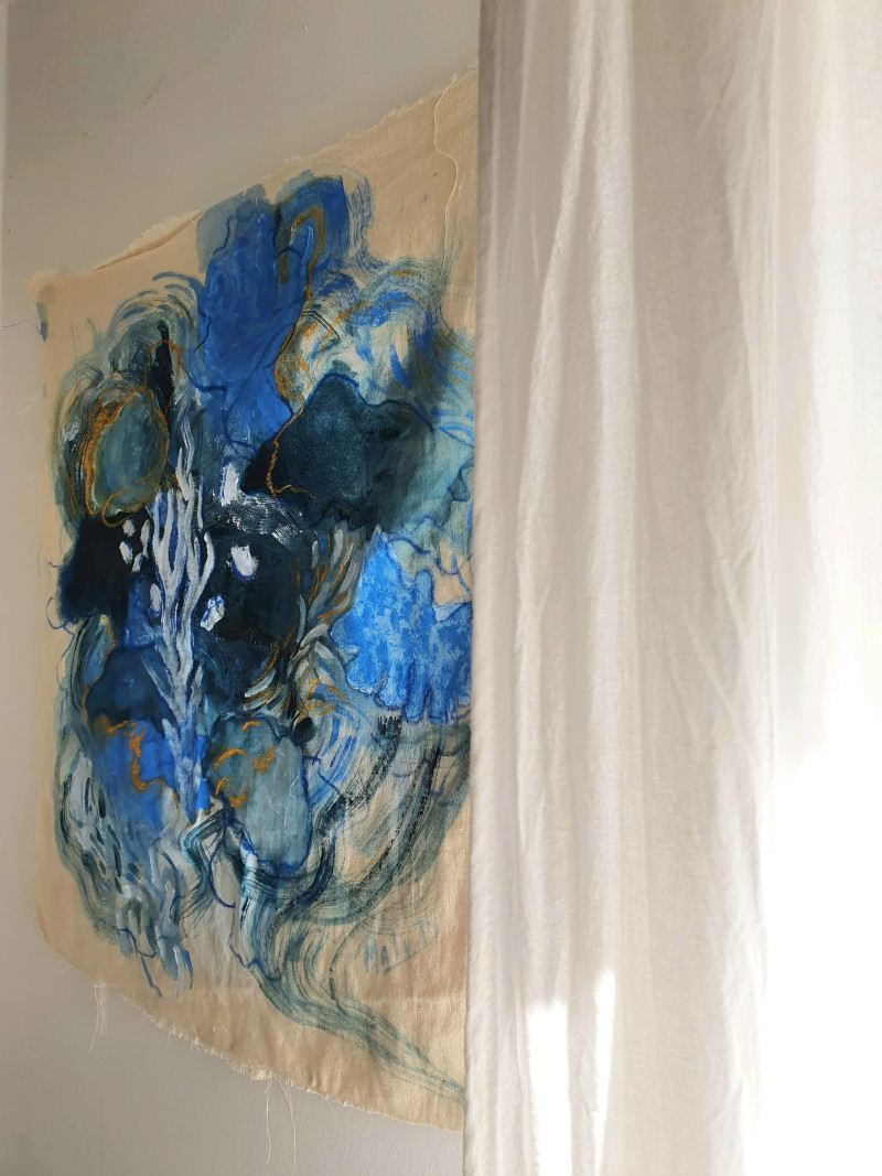 Esta obra pertenece a la serie Volver a ser. Se trata de una tela sobre bastidor de formato grande, ideal para colgar o dejarla apoyada.