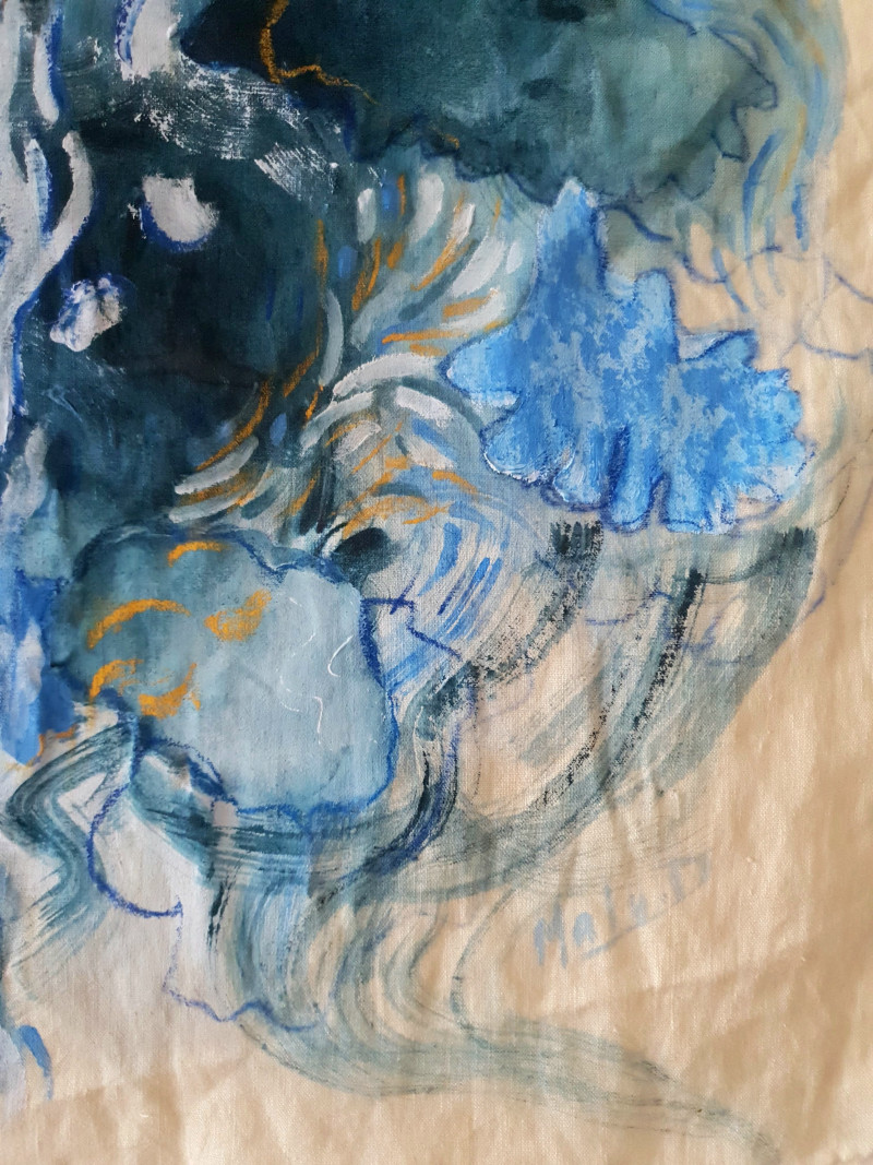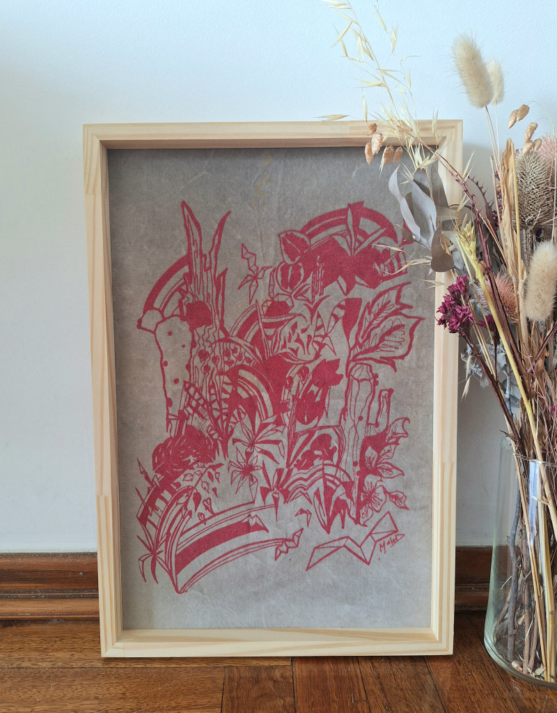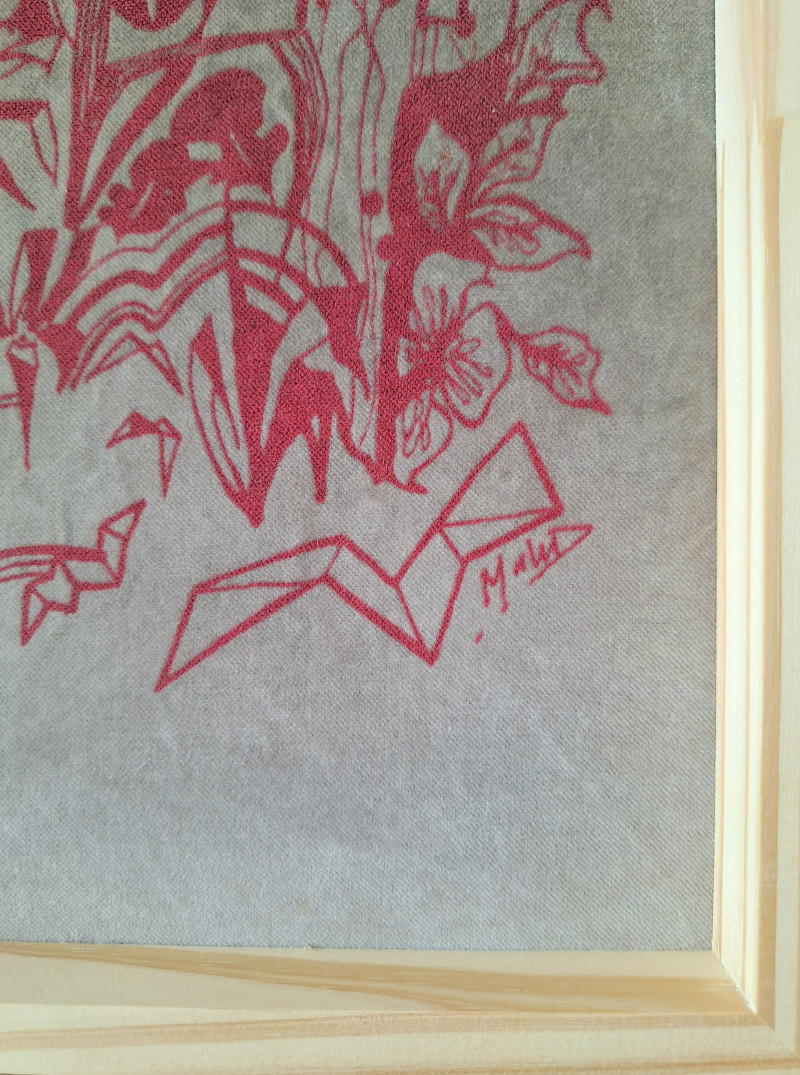 Se trata de un gran lienzo que puede ser colgado como tapiz o enmarcado.