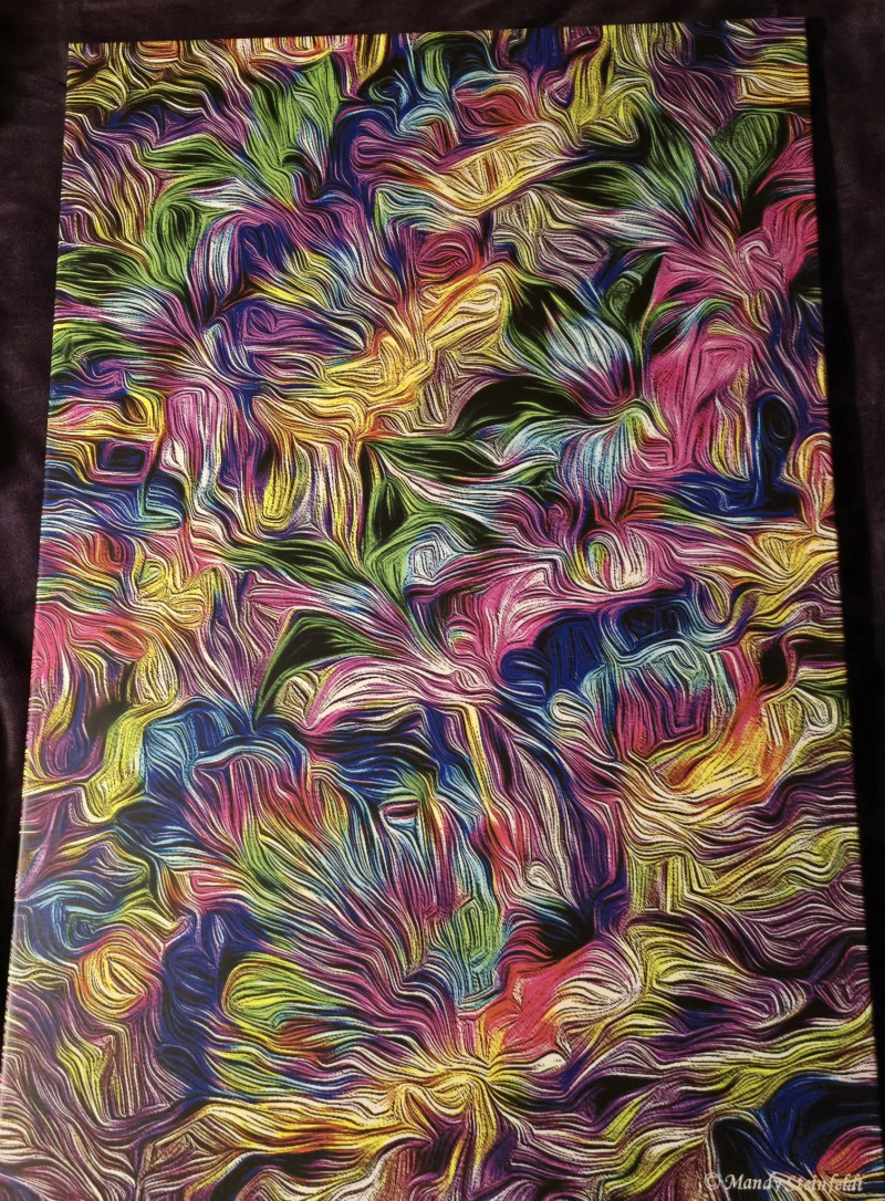 Experience a dynamic interplay of color and texture in this abstract artwork. The fluid patterns create a mesmerizing visual rhythm, inviting the viewer to explore the depths of vibrant hues and intricate designs. Each twist and turn reveals a new layer, making it a captivating focal point for any space. This piece embodies a sense of movement and energy, perfect for those looking to add a touch of creativity to their environment.