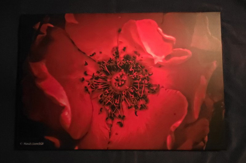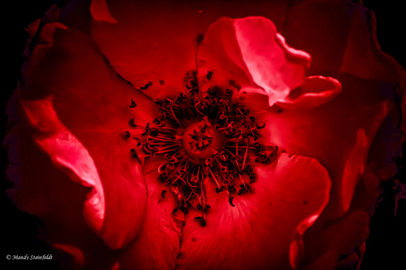 In this digital photograph, I've captured the essence of fiery passion through the radiant reds of a blossoming rose. The deep, velvet hues provoke a sense of intimacy and vitality, conjuring an atmosphere of both warmth and intrigue. This image pulses with life, offering an invigorating presence that can energize and inspire any space it graces.