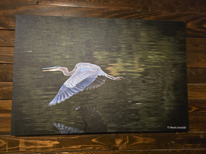 In capturing this fleeting moment, I was drawn to the serene grace of the great blue heron in flight. This photograph aims to evoke a sense of peace and the undisturbed beauty of nature in motion. The subtle interplay of color and reflection on the water enhances the heron’s majestic presence, inviting viewers to pause and appreciate the calmness and tranquility that nature offers. This image will bring a breath of serene energy to any space.