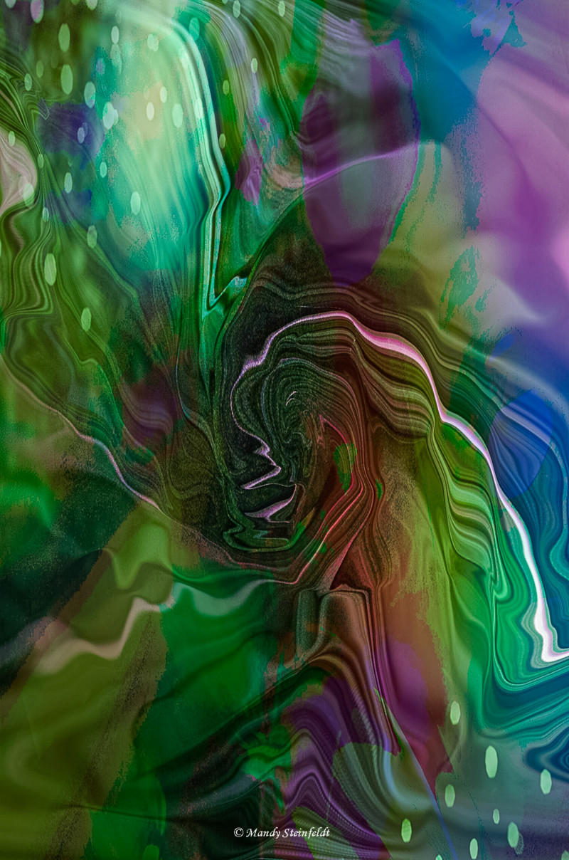 Experience a captivating journey through color with this abstract artwork. The fluid, swirling patterns evoke a sense of movement and depth, inviting the viewer to explore the interplay of vibrant greens, purples, and hints of light. Each layer reveals a new dimension, creating an ethereal atmosphere that transforms any space. This piece embodies a unique blend of energy and tranquility, making it a perfect addition to your collection. Let it inspire your surroundings and spark your imagination.