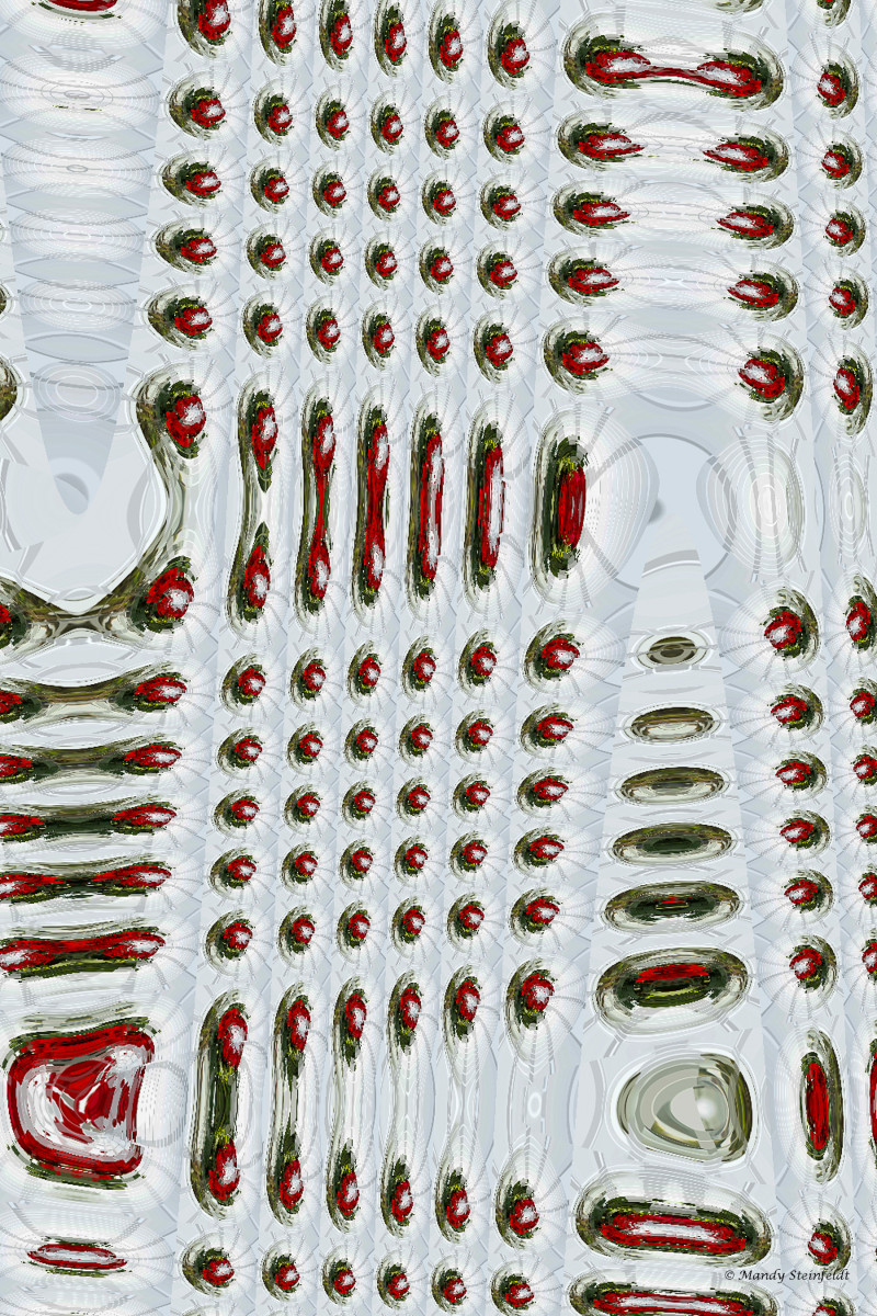 This abstract artwork presents a dynamic interplay of texture and pattern, where fluid forms in striking red emerge against a subtle backdrop. The rhythmic arrangement of shapes invites the viewer to explore the depths of its design, revealing layers of complexity and movement. Each element seems to pulse with energy, creating a visual dialogue that captivates the eye. and evokes feelings of energy and fluidity, reflecting themes of transformation or the passage of time. The choice of red can symbolize passion or intensity, while the overall design suggests a harmonious balance.