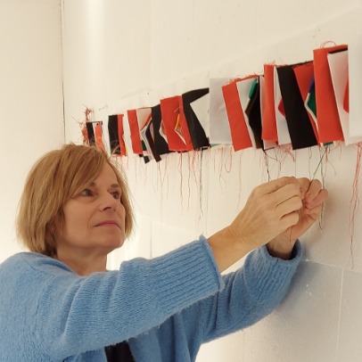 Born on december 11th, 1958 in Leuven. In 1981 she graduated as a bio engineer in Leuven. In the following period she was involved in biochemical research. During that time her great fascination arose for research strategy what she brought later into her art as well. In 1989 she got her teacher’s degree and taught sciences until 2019. Meanwhile she followed a five-year sewing course this is where her fascination for fabrics and textile techniques arose. After that she followed many short-term and long-term courses at art academies: drawing, metal and plaster sculpture, art with glass, E-studio, bronze sculpture, cross-circulair studio, ceramics, painting, textile art.