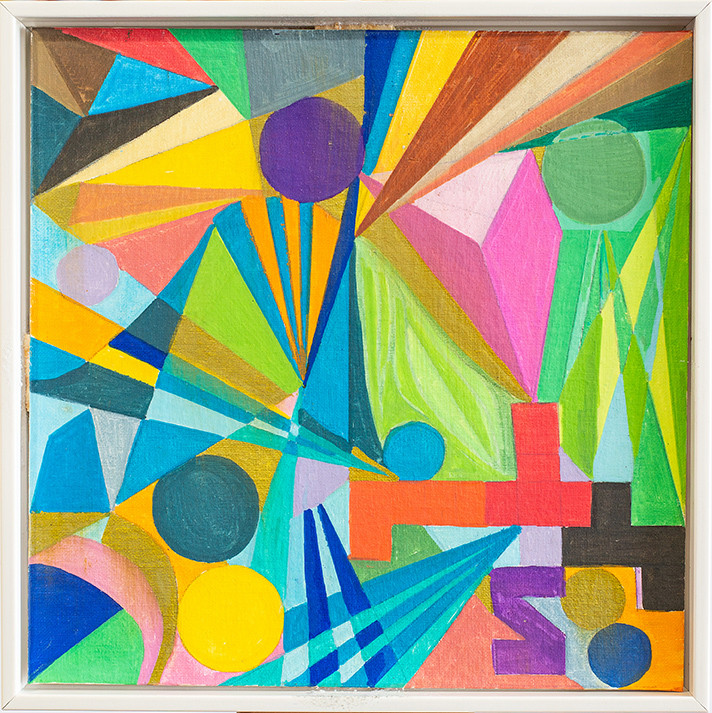 This painting explores the harmony between geometry and fluidity, where obtuse angles emerge and dissolve within a dynamic environment. Colors weave through curves, intersecting and diverging, creating a sense of movement and depth. The composition captures the interplay between structure and spontaneity, inviting the viewer to find rhythm within the abstract forms. A visual journey of balance and contrast, this piece transforms rigid angles into a flowing, interconnected movements of shapes and hues.