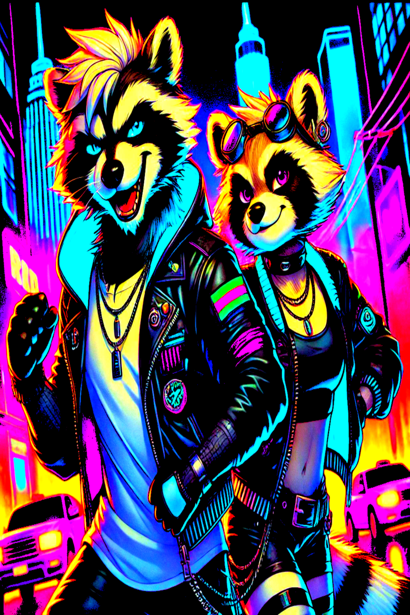 This is a painting of 2 characters from a book series I've been working on. Jax and Sarene, Rhys The Naughty Trash Panda's mom and dad before he was born. It embodies who my wife and I were before our children came about!