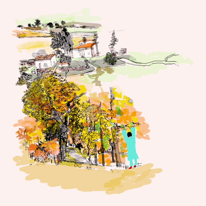 Autumn is so full of color and i, like so many artists can not refrain from painting the glorious golden fields and blue skies of Italy in Autumn. And in this picture you see me in the painting , painting the same Vineyard plein aire.