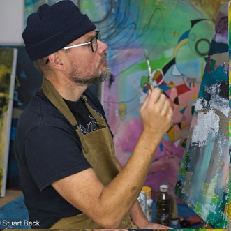 Beck’s interest in painting began early in life, nurtured by the guiding hand of his late father. Over the years he found his groove, establishing his style as the abstract painter he is today.