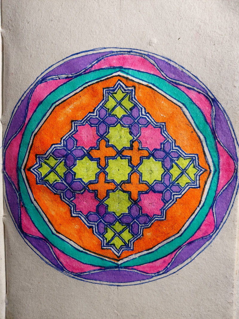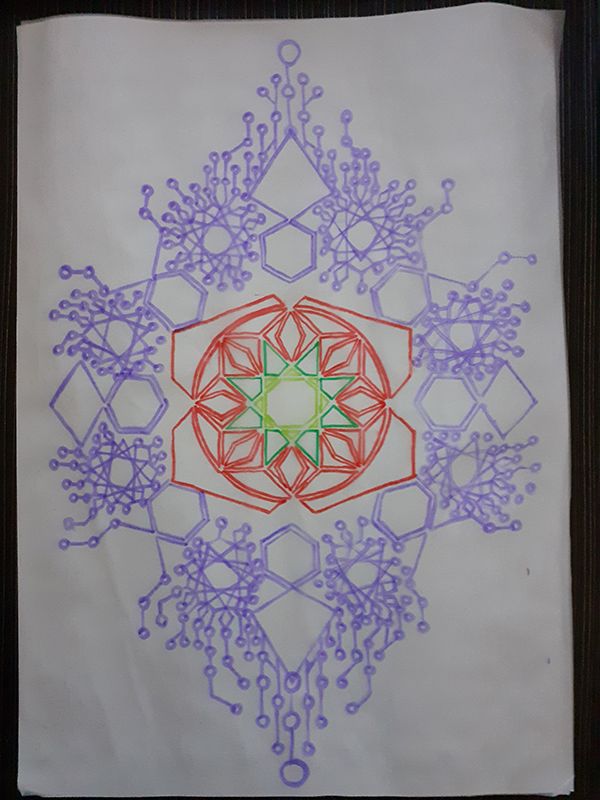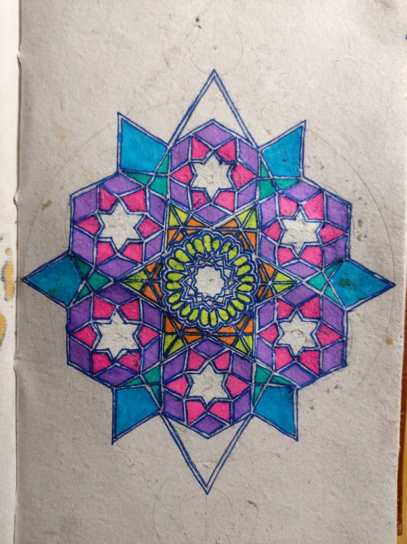My thoughts and feelings go out to the victims of the recent earthquake and flood weather phenomena. Inspiration from Islamic geometry, featuring decagons, hexagons and pentagons.
