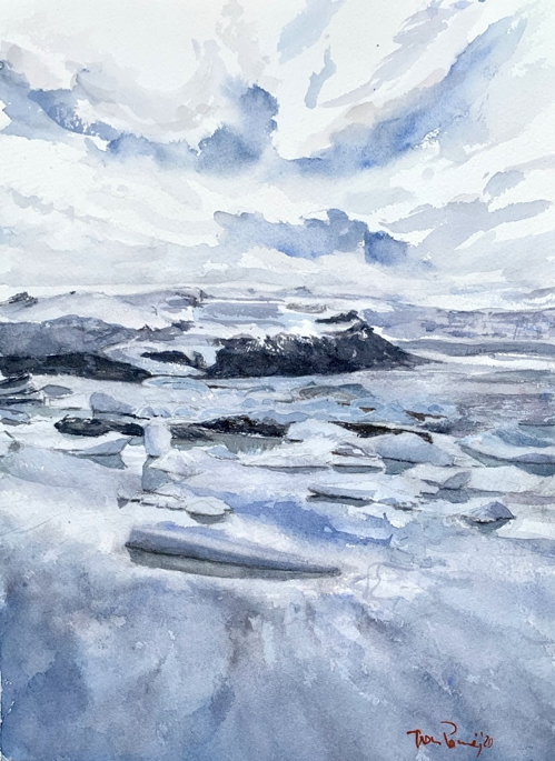 Las cadencias cromáticas a través del sedimento del color en el papel, tienen esas resonancias sutiles que atrapan en su voz queda.