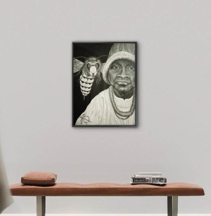 In this exhibition, painted by Vivienne Kroes, she mainly depicts strong male and especially powerful female warriors/fighters and leaders who resisted the system and slavery. In particular, people who meant (and still mean) a lot to their people, who protected their kingdom, and who stood up for their rights and freedoms. This is expressed through music, their leadership, their rebellion, and what they stood for: their strength, faith, spirituality, way of life, beliefs, and hope. It is also a piece of forgotten black history. Read the explanation accompanying each painting in this series and you will see the common thread that connects these chosen individuals/subjects and thus formed Vivienne's Unseen Art Archive!